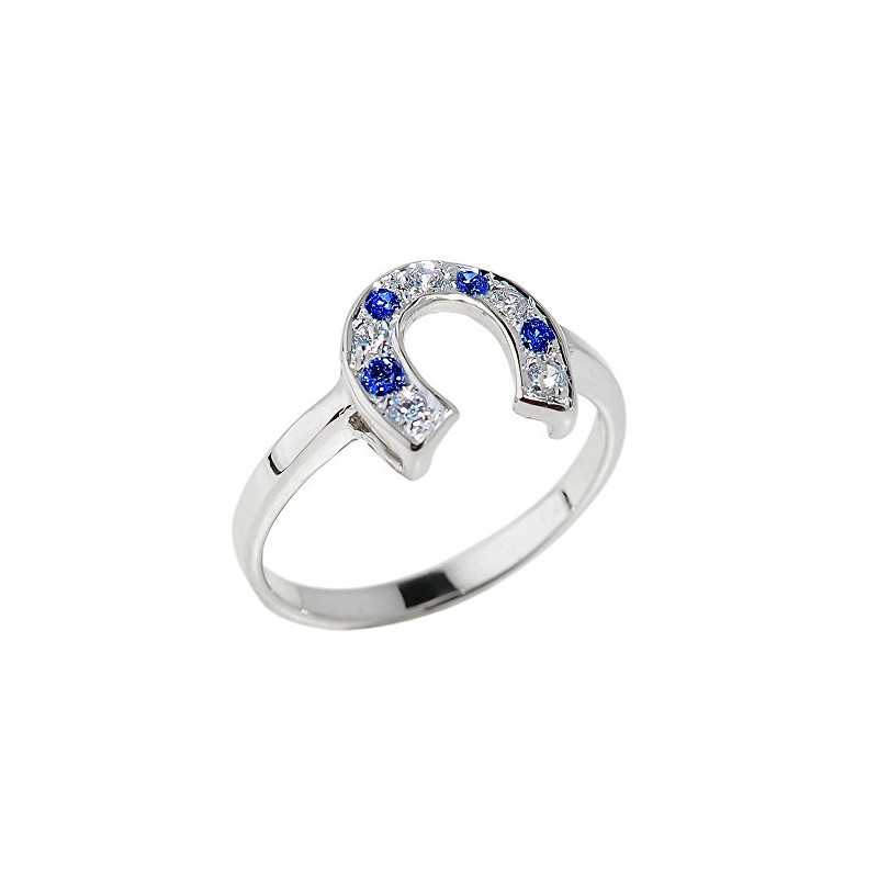 Fine 925 Sterling Silver Blue and White CZ Lucky Horseshoe Ring (Size 5)