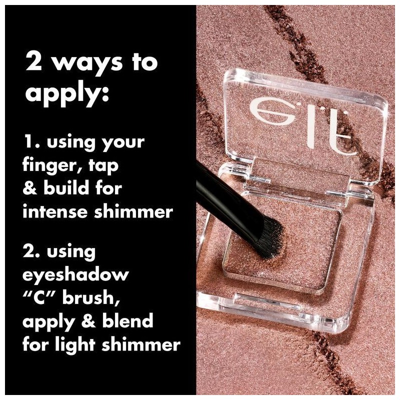 Can be worn alone or layered on top of your go-to e.l.f. eyeshadowsTurn every eye look into an e.l.f.ing party! This sheer, dazzling eyeshadow topper is packed with micro-fine glitter flecks to enhance eyes with a mesmerizing wash of white sparkle. The soft, smooth formula applies effortlessly and allows you to build a long-lasting look. Can be worn alone for subtle shimmer or on top of your fave eyeshadow to amp up the glitz.