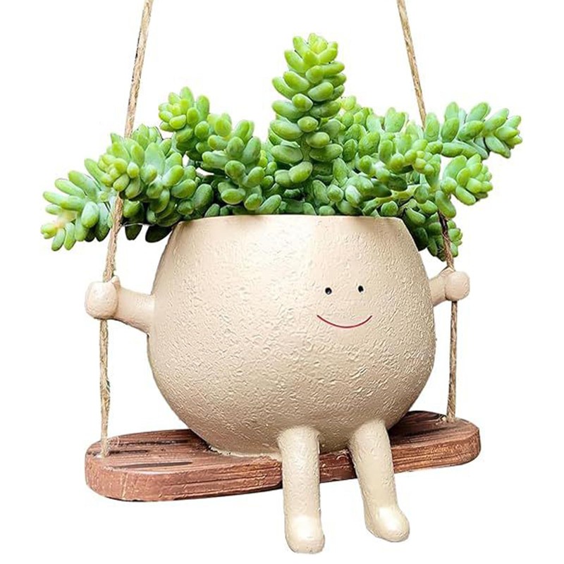 - Charming child-like design: the appearance of the swing flower pot is very unique, like a child sitting on a swing. With its unique face design and smiling expression, hanging flower pot adds a touch of fun and charm to your garden or room