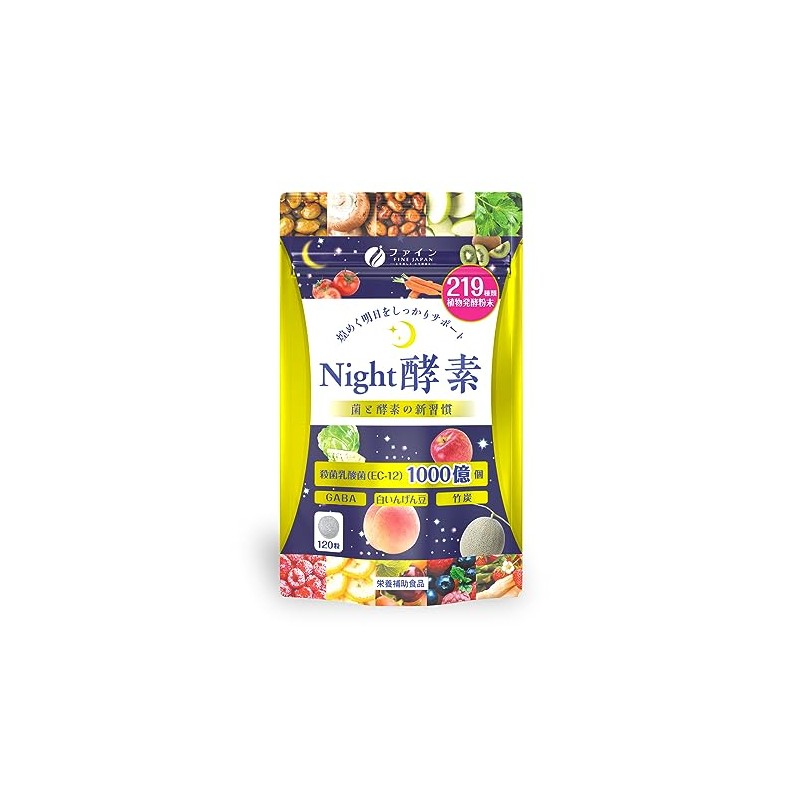 ファイン(FINE JAPAN) ナイト酵素 ラフマ葉抽出物 GABA 食物発酵粉末 殺菌乳酸菌 L-テアニン L-リジン 白いんげん豆抽出物 竹炭10mg L-オルニチン 国内生産