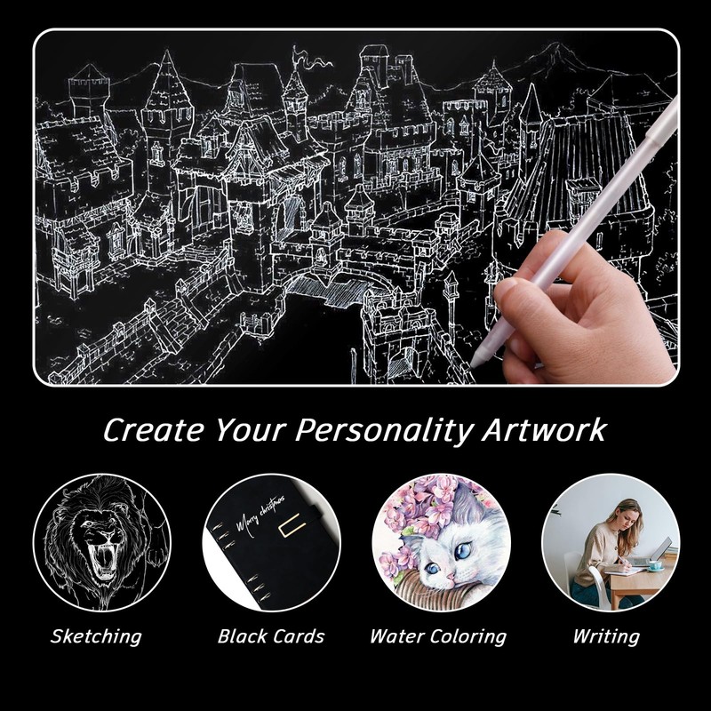 1. These White Ink Sketching Pens are fit for drawing, marking and coloring. Ideal for students, teachers and beginners to coloring books,scrapbooking, drawing and crafting.
