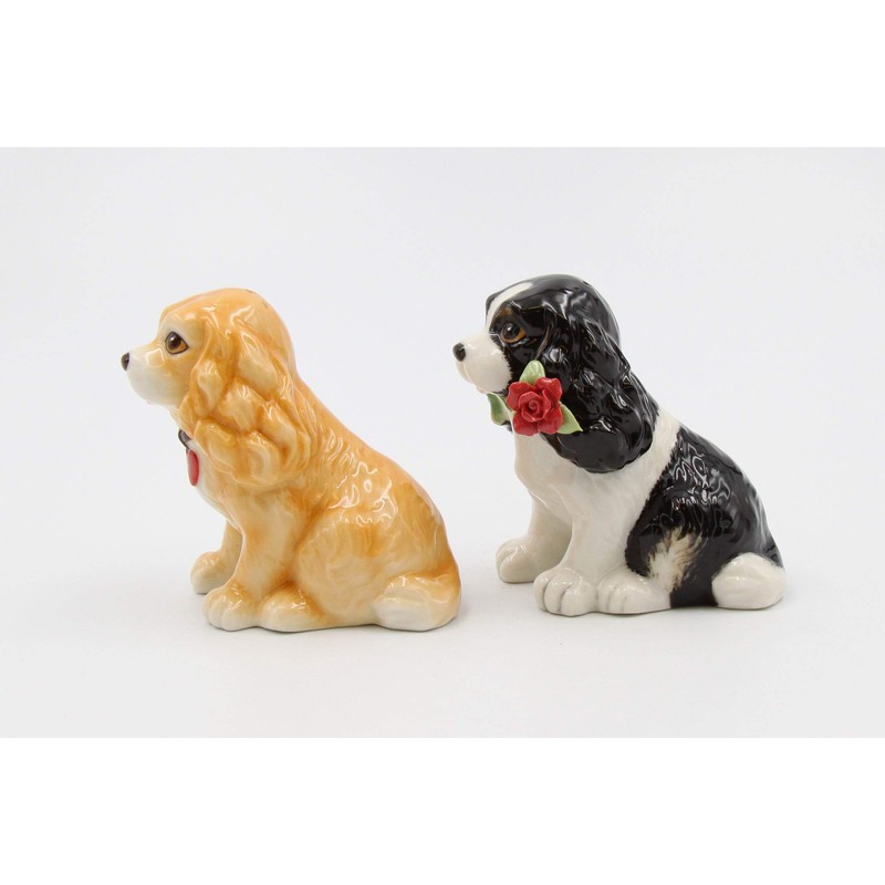 Fine Ceramic Valentine Cocker Spaniel with Red Heart Collar and Red Rose Salt & Pepper Shakers Set, 3-1/4" L
