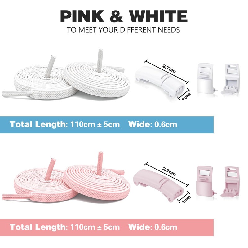 - 【Generic】The package contains one pair of pink laces and one pair of white laces to match your different coloured shoes. The length of the laces is 110 cm and can be extended to 200 cm. They are perfect for adults and children and can be easily cut to the desired length without the hassle of knotting.