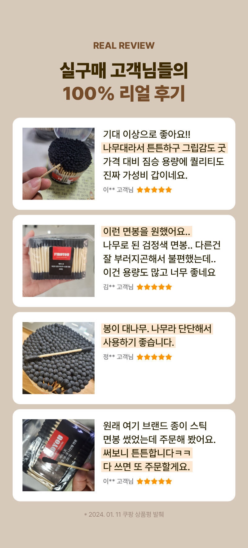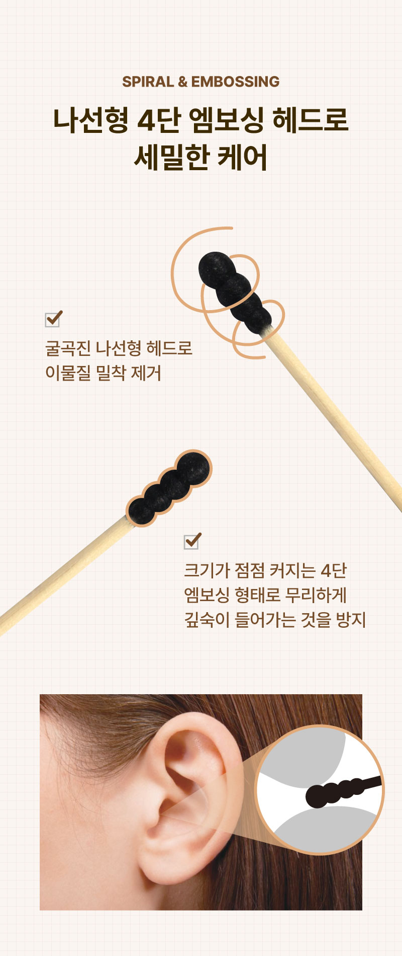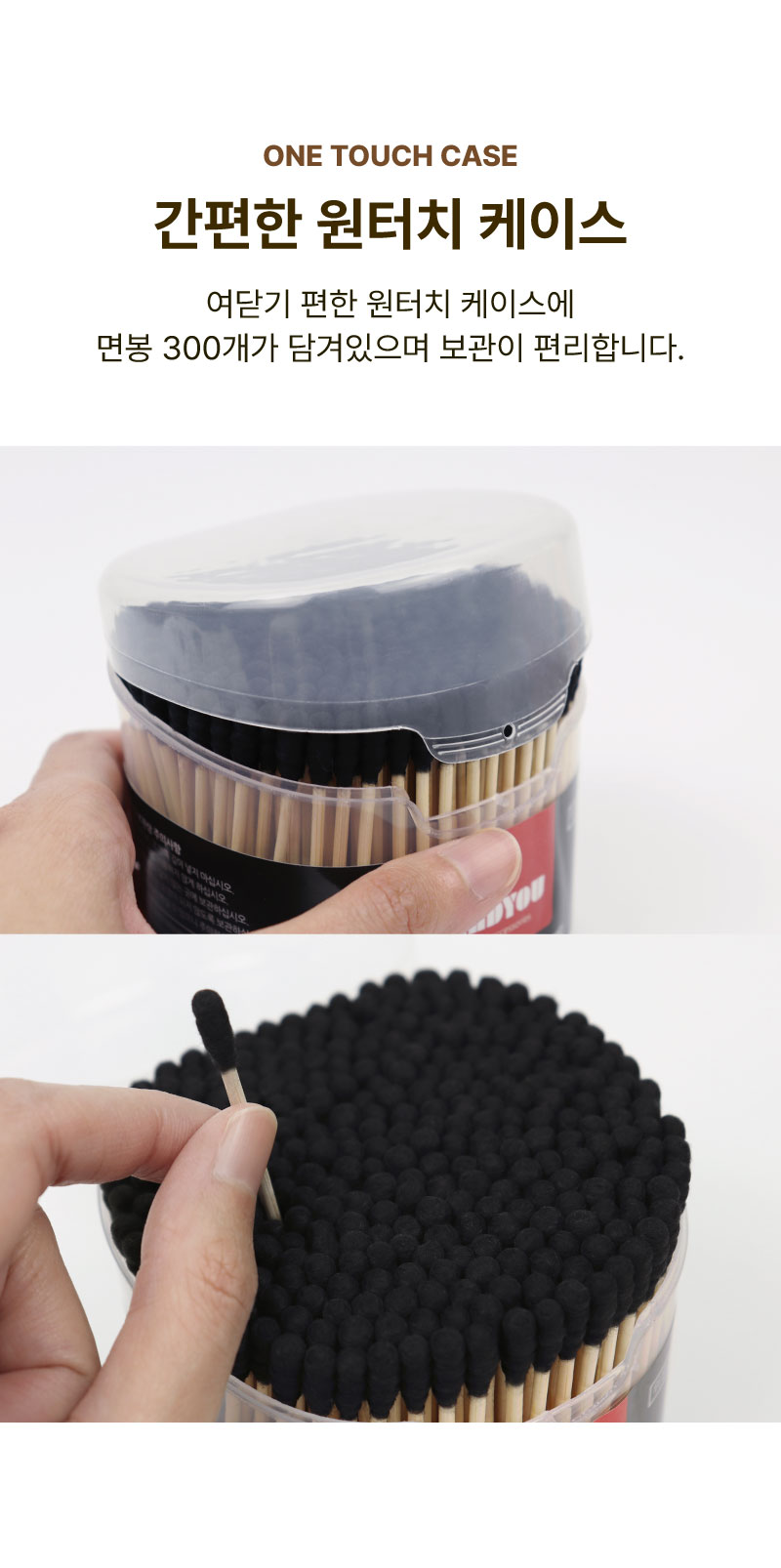 Finedew Black Cotton Swabs Natural Bamboo 300 Count x 3 / 파인듀 검정 면봉 천연솜 대나무 300개입x3개