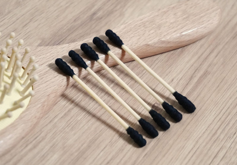 Finedew Black Cotton Swabs Natural Bamboo 300 Count x 3