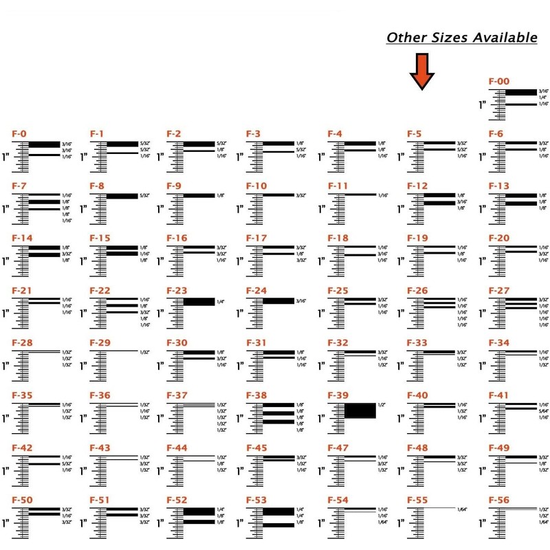 - Style: This Stencil is the F-00- (3/16" Stripe, 3/16" Gap, 1/16" Stripe)