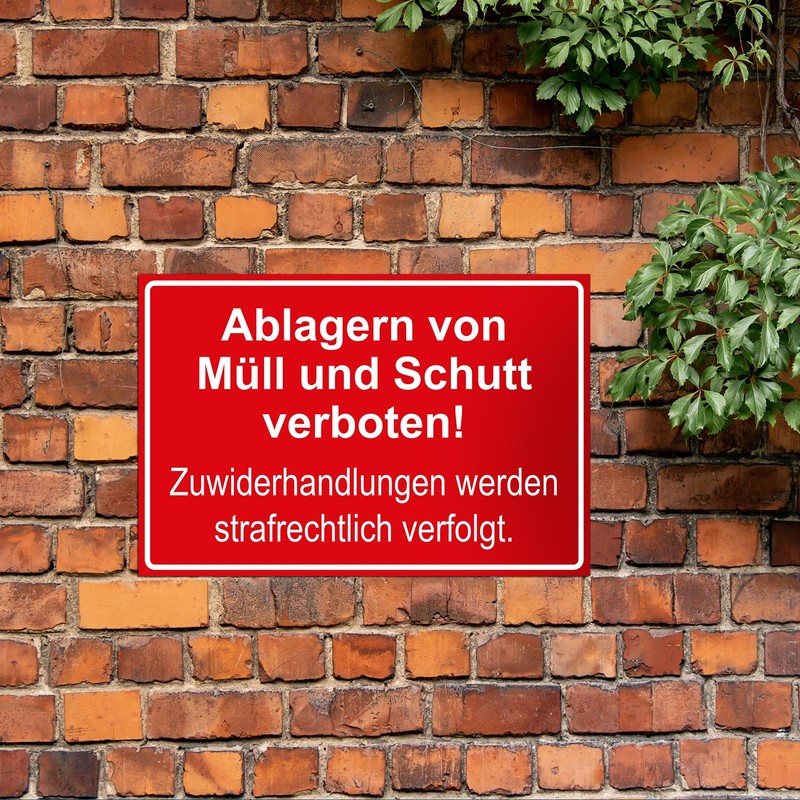 Finest Folia Ablagern von Müll und Schutt verboten Notice Sign 20 x 30 cm Aluminium Composite Panel Sign for Fence Gate Door Posts Weatherproof Robust Aluminium Warning Sign