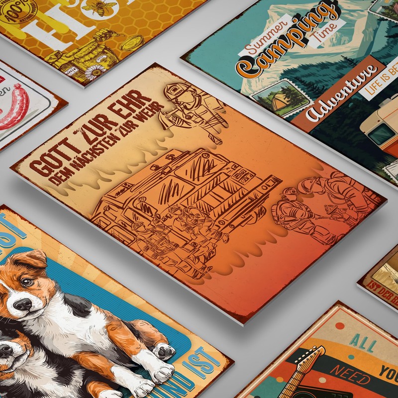 Finest Folia RV002 Aluminium Sign 30 x 20 cm Decorative Hobby Sign for Garden Living Room Garage Outdoor Decoration Retro Blackboard Hobbies Weatherproof Robust Stable RV002 (16 Fire Brigade)
