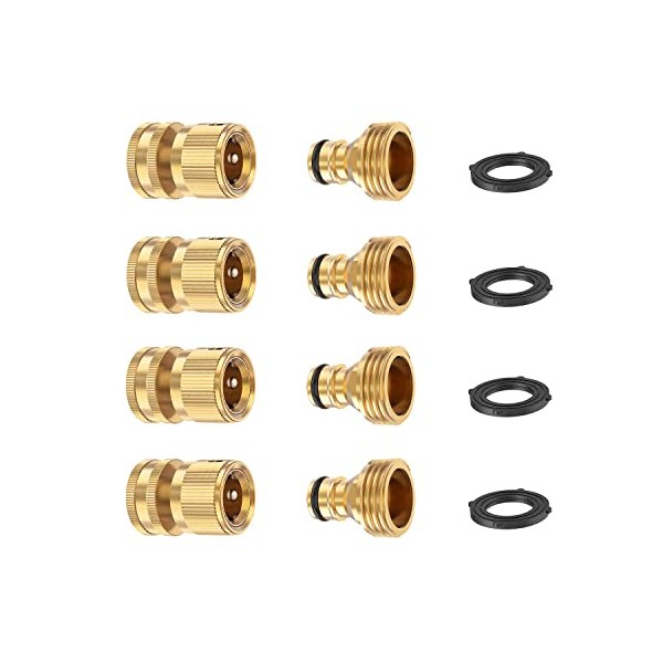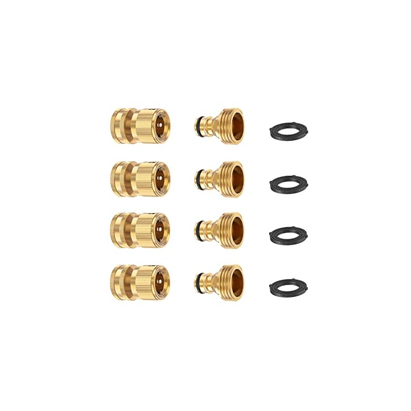 - 【Package Includes】: 4 x brass male quick connectors, 4 x brass female swivel connectors, 4 x rubber self locking washers.