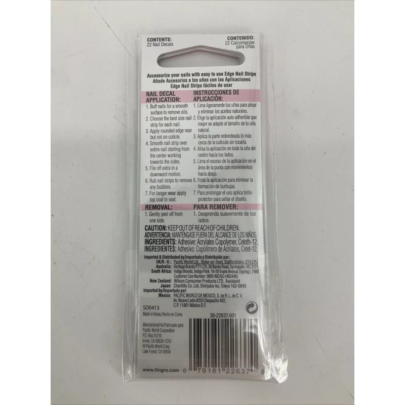 Fing'rs 4 PACK Fing'rs Edge Nail Strips Floral 22637 NEW