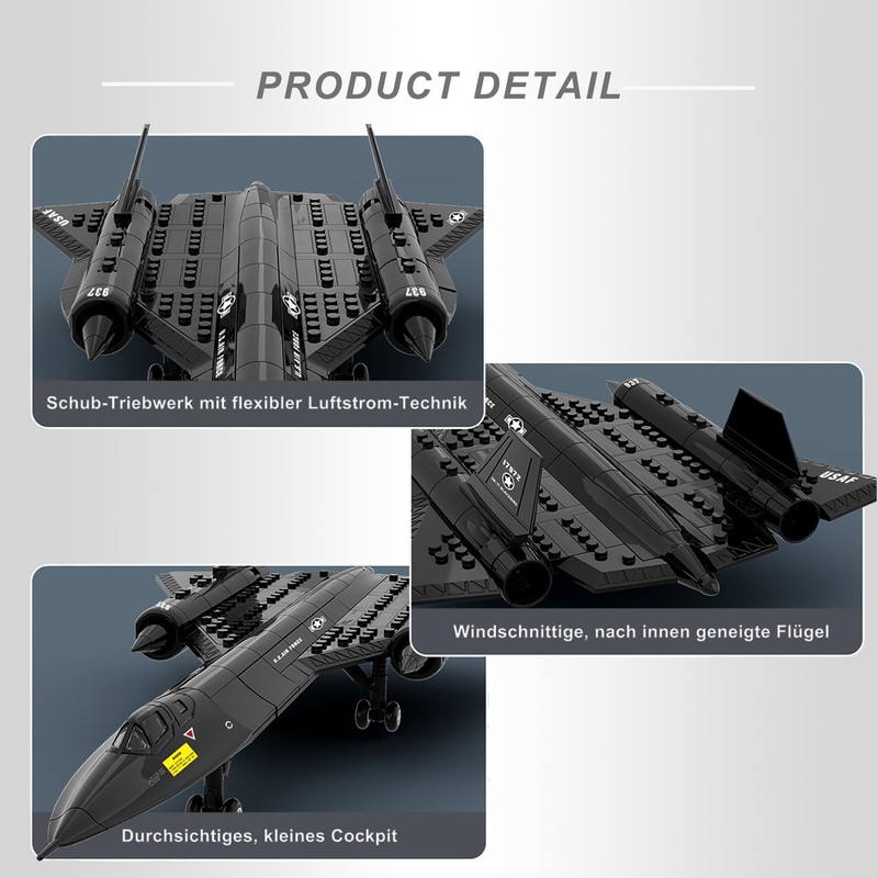 • Historically authentic fighter jet replica: this fighter jet clamping blocks model of the legendary SR-71 Blackbird (43.8 x 22.7 x 9.6 cm) with faithful decals and aerodynamic design is a must for military fans.