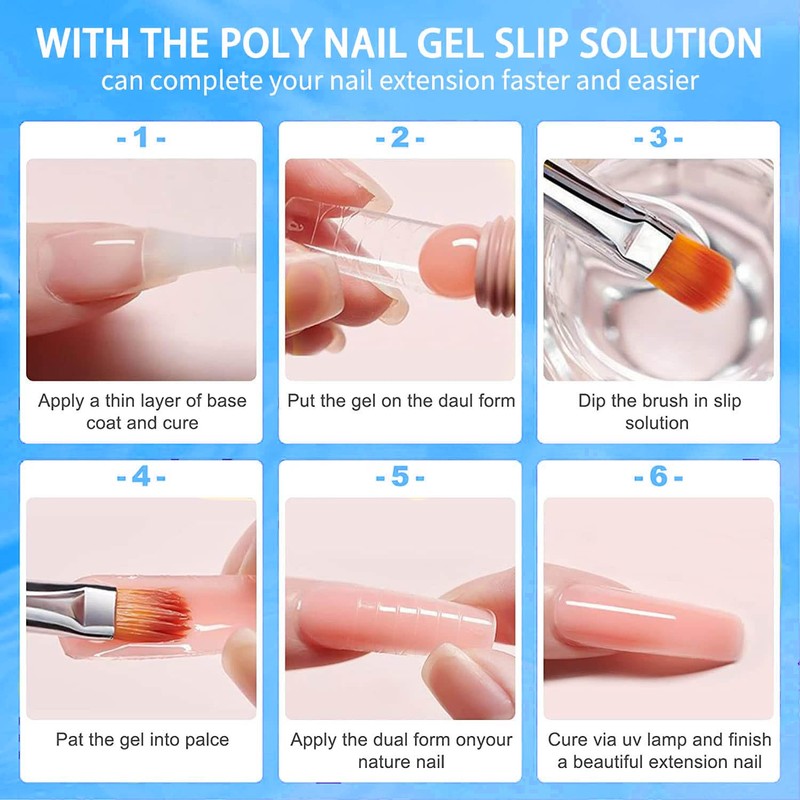 • Easy To Use:Finger Secret Poly Gel Nail Kit for beginners is a great start. The nail slip solution makes the nail application process easier and faster. Dip the brush in the solution and effortlessly pat the gel into place. It helps you achieve professional-looking nails at h