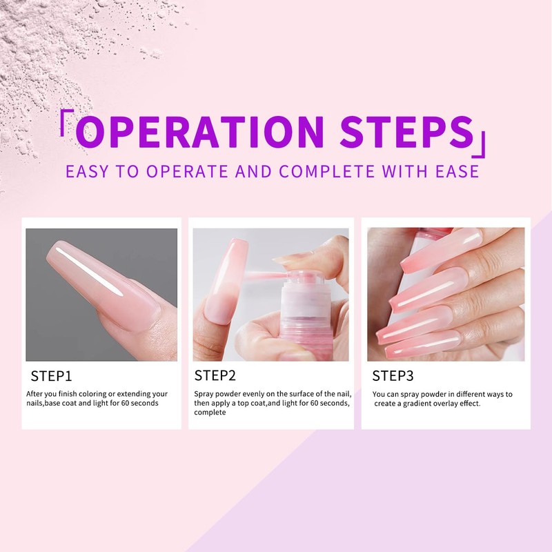 - Simple Steps:Just press the spray head and apply the right amount of nail dust to your nail design for a professional salon-made look.