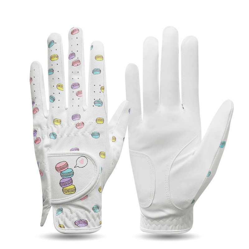 FINGER TEN Womens Golf Golf Gloves Left Hand Right Microfiber Extra Grip Breathable with Macarone Pattern,Ladies Golf Gloves Perfect Swing Fit Size S M L XL (White, X-Small-Worn on Left Hand)