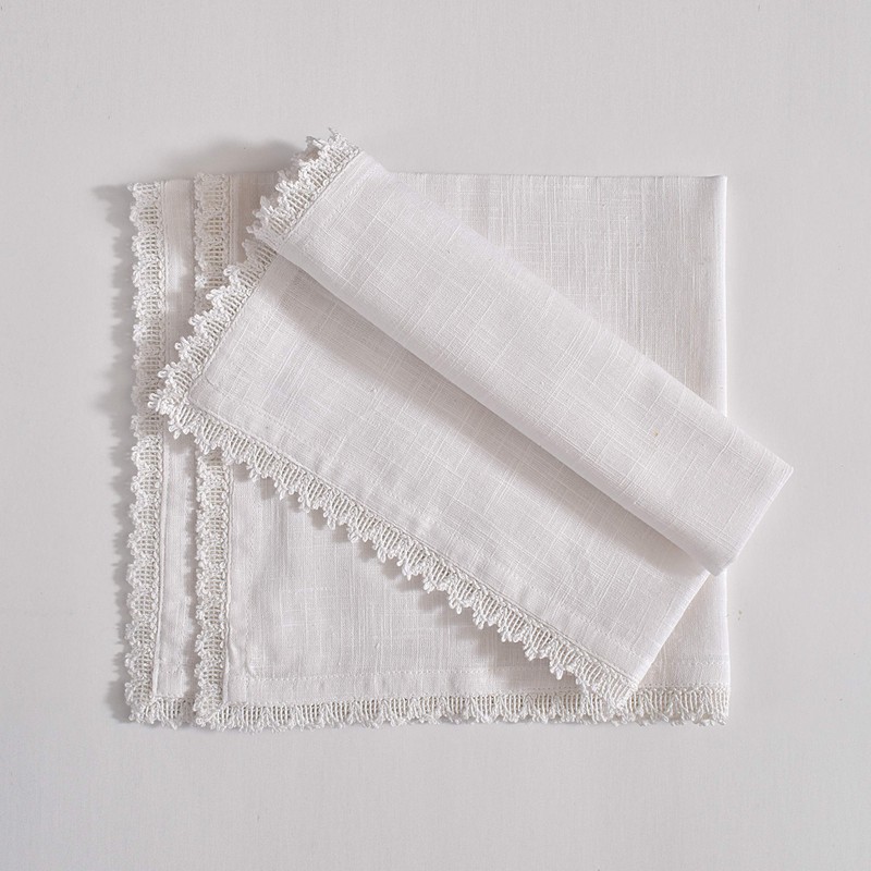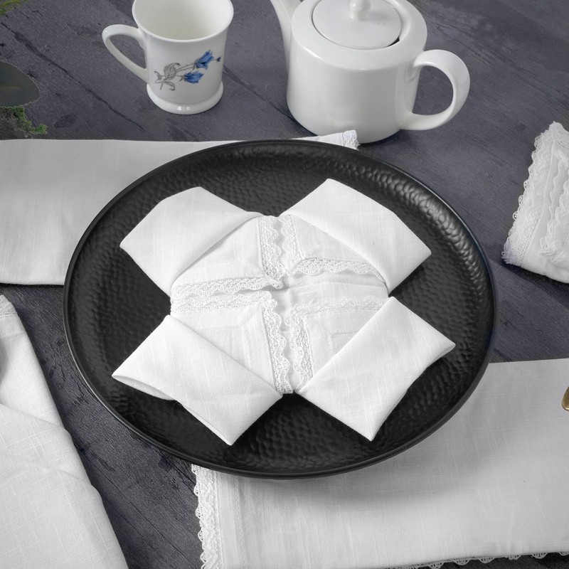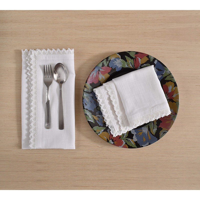 - DESIGN STORY: -This elegant and peaceful white dinner cloth napkin with cotton laces will uplift your mood & will add vintage and exclusive look to your dining table. The delicate and sophisticated lace dinner cloth napkin is soft and absorbent. This 100% slub cotton Fingercraft dinner table napkin is available in suitable texture is sterling choice for dining table decoration in every season.