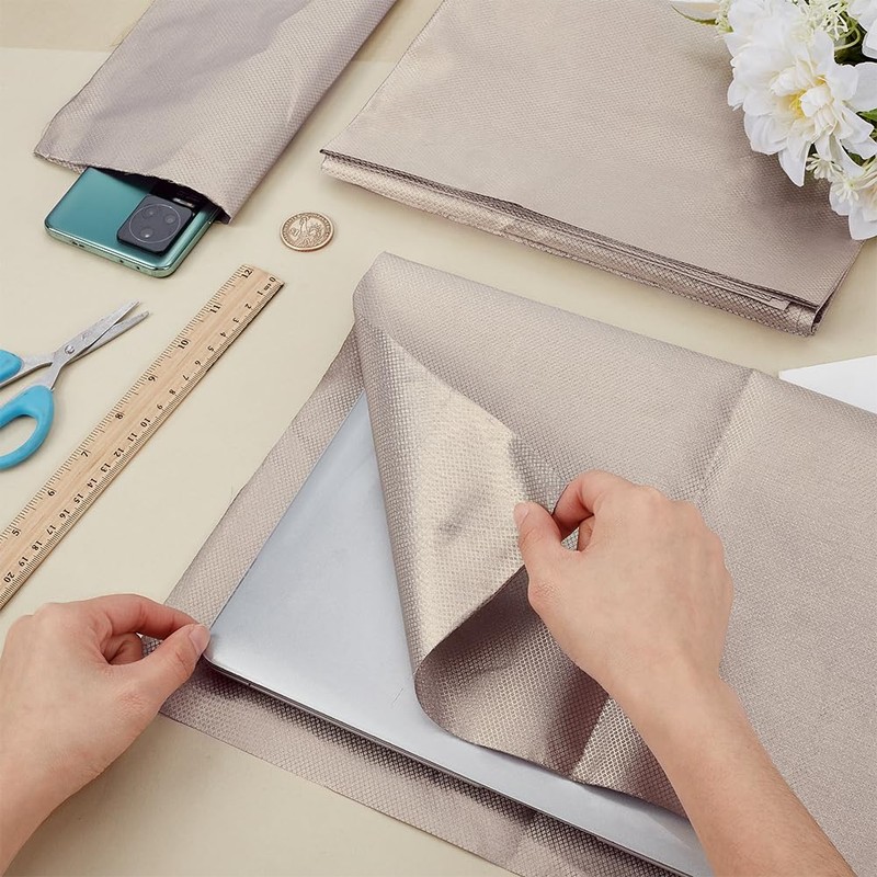 - Hochwertiges Material:Das abschirmende Faraday-Gewebe besteht aus Kupfer und Polyester, die drahtlose Frequenzen effizient blockieren kann, um HF wie WiFi zu blockieren, Geographisches Positionierungs System, rfid, und NFC. Dies schützt Sie vor potenziell schädlichen HF-Strahlen und eliminiert effektiv die schädlichen Auswirkungen von Funkwellen, WLAN-Signale oder elektromagnetische Felder im Alltag.