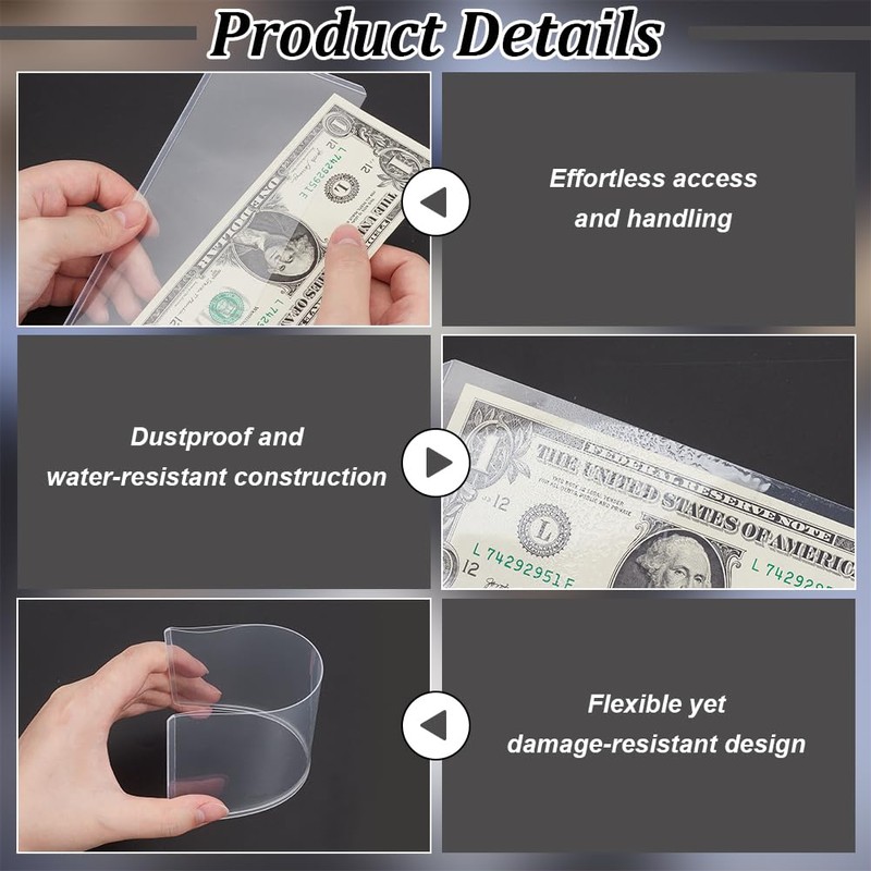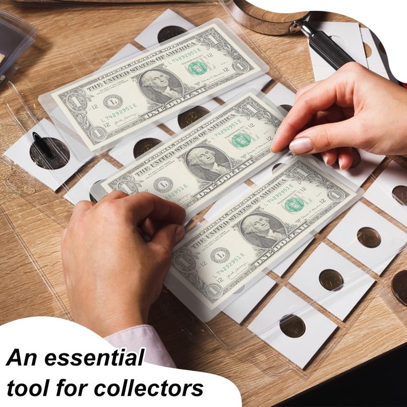 - Versatile Use: These currency sleeves are perfect for safeguarding and showcasing your dollar bills and most world banknotes. Also ideal for storing collectibles like stamps, trading cards, tickets, and small documents. The transparent design allows for easy viewing, making them an excellent choice for collectors and enthusiasts.