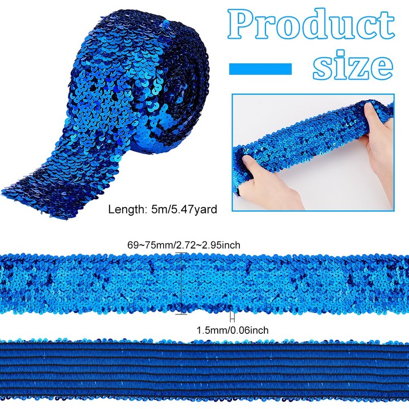 - 【Package Included】: You will receive 1 roll of blue sequin trim, the size is about: 5.5 yards/5 meters long, 69~75mm wide, 1.5mm thick, the length is enough for your daily needs, suitable for holidays and party occasion. PLEASE NOTE: Sequins may lose color when washed and cannot be washed with garments.