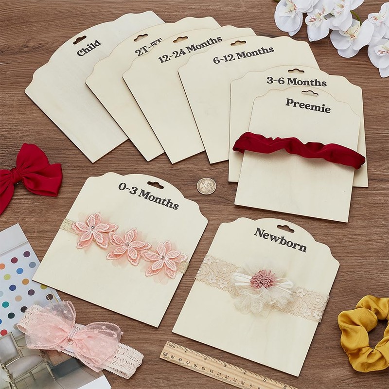 FINGERINSPIRE 8 Piece Hair Band Display Cards Set 8 Styles Wooden Headband Hair Bows Display Bows Display Boards Rectangular Light Yellow Fly Boards Jewellery Display Cards for Women Hair Bows Gift
