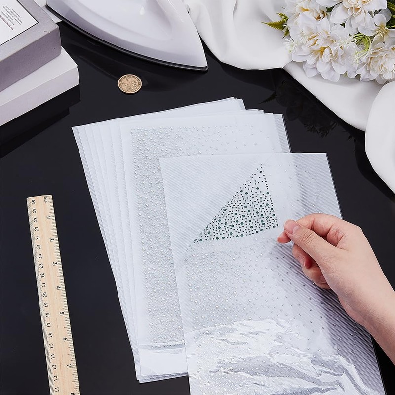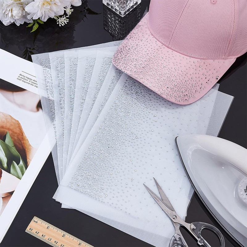 - Package & Size: You will receive 8 sheet rhinestone crystal iron on transfers. The size of the whole decal is about 318mm/12.5inch wide, 420mm/16.5inch long, 1mm thick, rhinestone: 1.5~2.5mm in diameter.