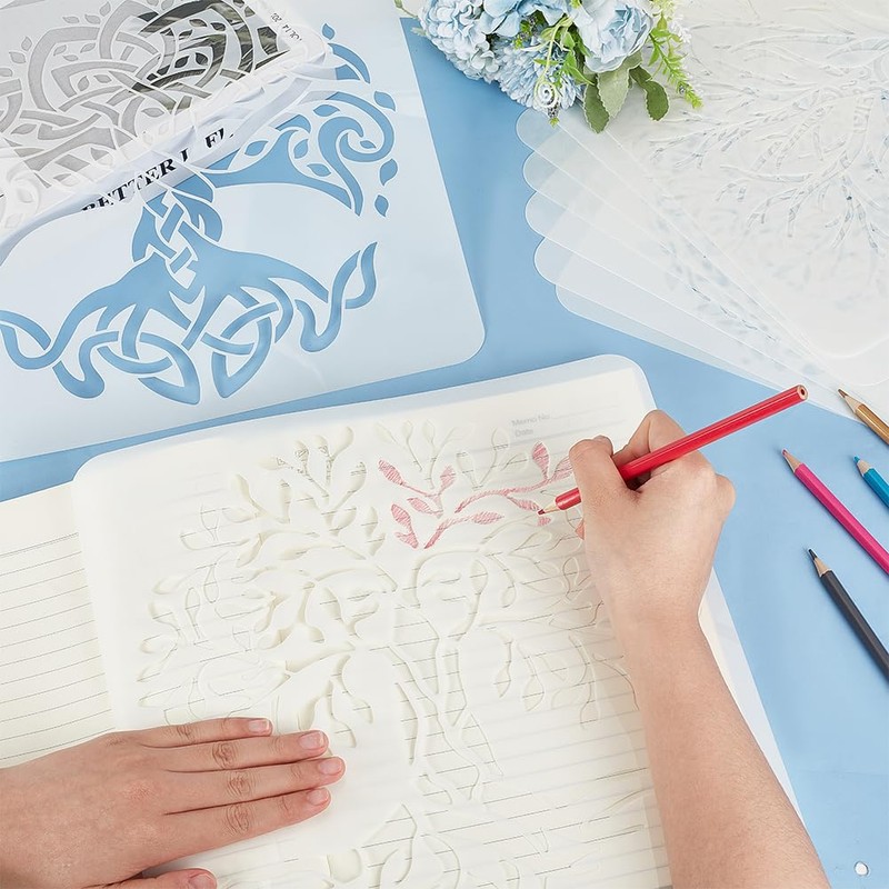- Hollow Out Stencil: You will receive a total of 9 pieces of craft stencils with different designs for each piece, enough quantity can meet your daily DIY and decoration needs. Sizes Measure: about 11.8 inch/30cm wide, 11.8 inch/30cm long.