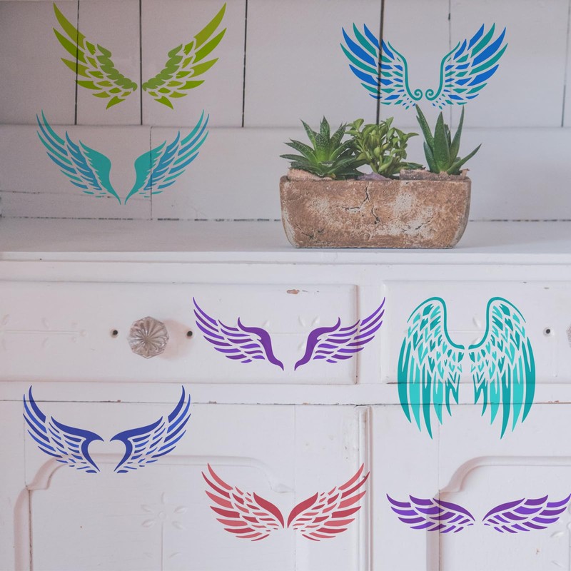 FINGERINSPIRE Angel Wings Stencils 11.8x11.8in - 8 Style Feather Wings Painting Templates Reusable for Decorating Wood, Wall and Furniture