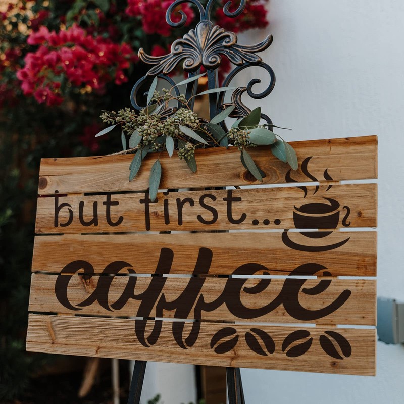 - Coffee Theme Stencil: You will get 1 pieces PET painting stencil of coffee word theme. Patterns include words script of "But First Coffee", with coffee cup and coffee beans as embellishment. This stencil will make your creation more attractive, suitable for kitchen or coffee shop decoration.