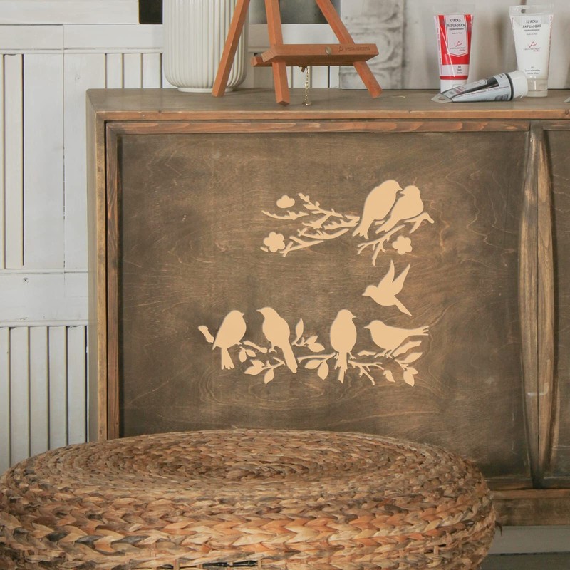 - Birds on tree branches stencil: you will receive 1 x bird on tree branches pattern painting stencil, with the A4 size of 29.7 x 21 cm. You can draw it on any surface you want to decorate, use your creativity, take your DIY craft projects to the next level with this stencil.