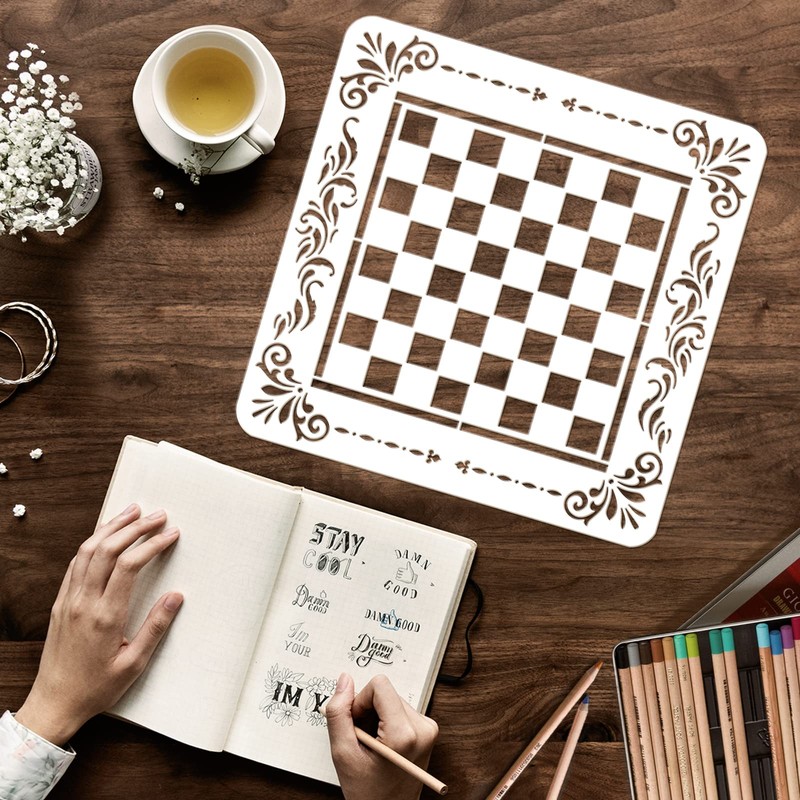 - 【Checkerboard Stencils】 You will get 1 piece of PET decoration template stencil with the checkerboard game pattern design, which easy to use, bring a relaxed and happy time to your and your friends' leisure life. Size measures about 11.8x11.8inch/30x30cm.