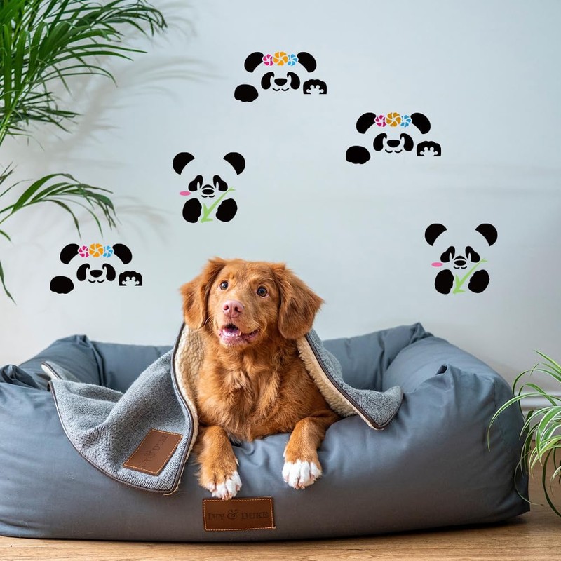 - Panda Face Pattern The reusable stencil is an animal theme template. There are 2 cute panda face patterns and one panda holds bamboo, while the other panda has beautiful flowers on its head. Our template helps you create pretty decorations for your clothes.