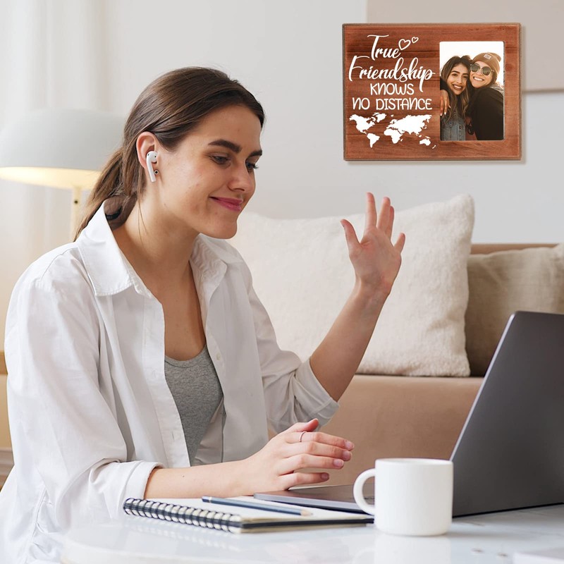 FINGERINSPIRE Picture Frame True Friendship Knows No Distance 10 x 15 cm Distance Friendship Gifts Frame Friends Memories Picture Frame for Hanging / Table Wooden Frame Photo Frame