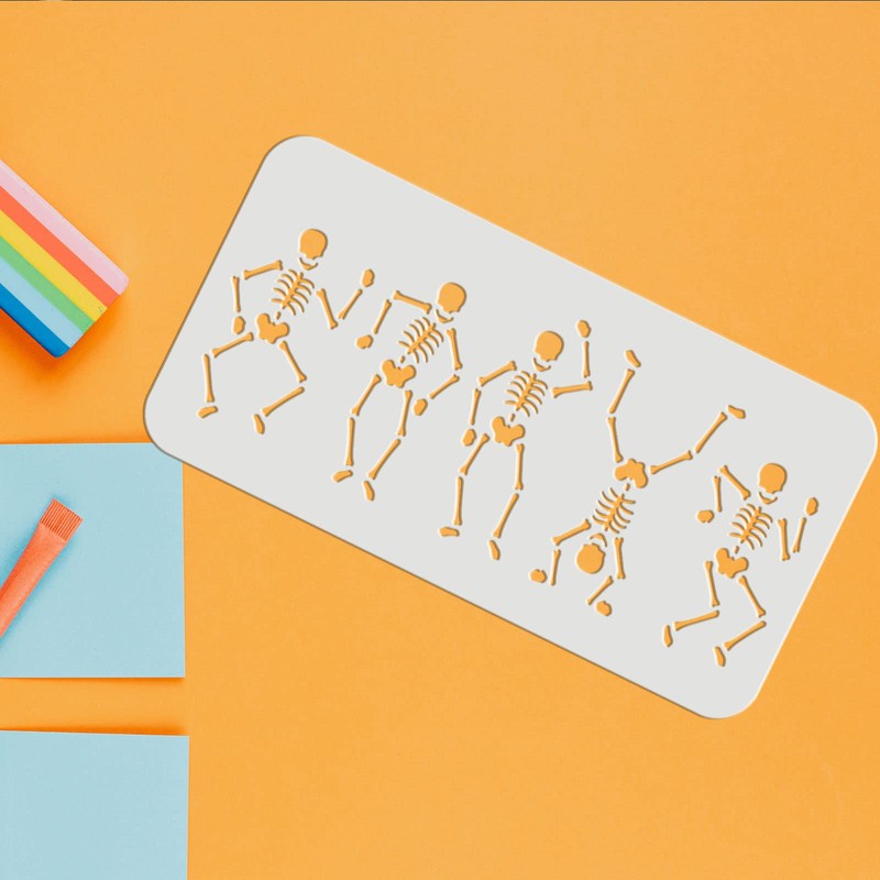- Skeleton Dancer Stencil: You will get 1 piece of PET painting stencil, there are 5 skeleton lined up horizontally, they are dancing cheerfully in different poses, special for Halloween decoration, party, other holiday or daily decoration.