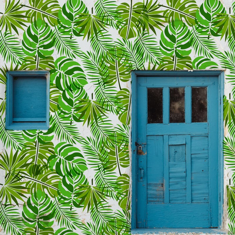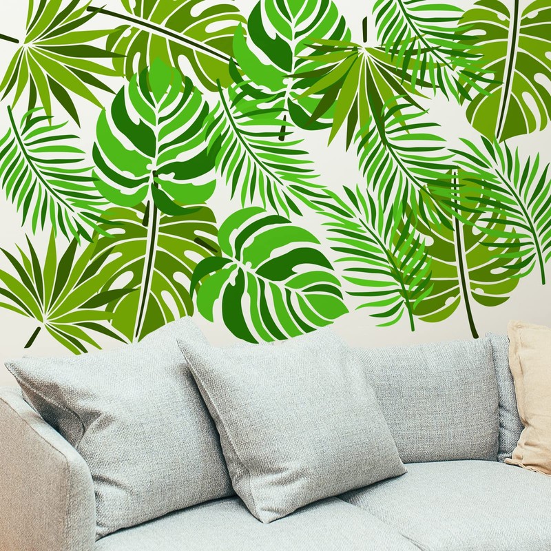 FINGERINSPIRE Tropical Leaf Stencils, 2 Sizes, Fern Leaf Stencils, Plastic Palm Leaf Pattern Painting Stencil, Reusable Stencil with Large Botanical Leaves for DIY Furniture Pack of 4