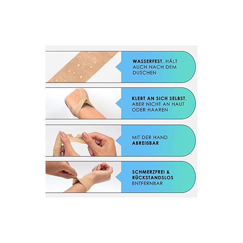 • üëç FINGERPFLASTER DAS √úBERZEUGT: Das Fingertape ist selbsthaftend und l√§sst sich somit schnell in Notf√§llen anbringen. Die universelle Anwendung ist durch die Elastizit√§t der Fixierbinde gegeben. Egal ob am Finger, an der Hand oder am Fu√ügelenk!