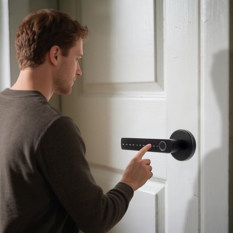 - ALUMINIUM ALLOY MATERIAL: Sturdy construction, the fingerprint door handle is made of sturdy aluminium alloy, ensuring durability and reliability for long-term use, and is not easy to break and deform.