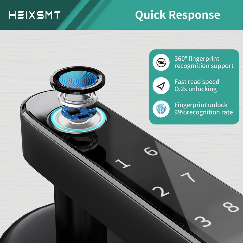 - 🔒 Swift Fingerprint Access: Our cutting-edge biometric door lock offers lightning-fast 1-second unlocking with 99% recognition accuracy at 508DPI. Save up to 50 unique fingerprints for a key-free experience.