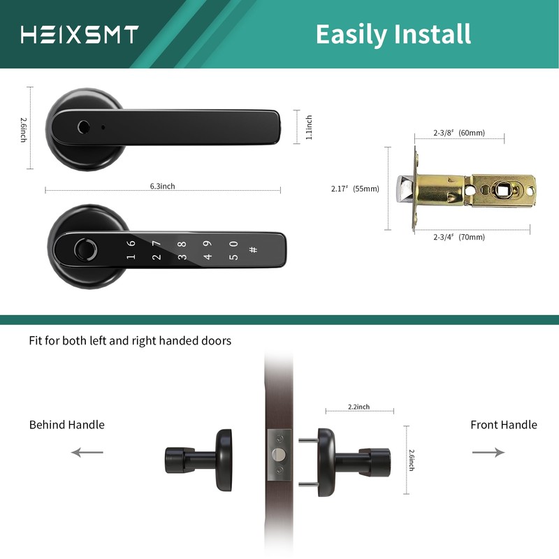 - 🚪 Simple Installation: Fits US standard doors (Backset 2-3/8″(60mm) and 2-1/8″(70mm)), door thicknesses 1-3/8'' to 2-1/8''(35mm -55mm). No wiring or drilling needed, suitable for both left and right-handed doors, indoors or outdoors.