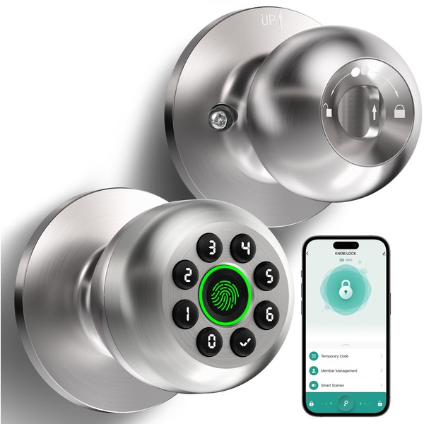 - 4-in-1 Unlocking System: Experience convenience with our smart door knob featuring four unlocking methods: fingerprint recognition (20 users), personalized passwords (20 users), app Bluetooth control (gateway required for remote access), and backup keys. Enjoy automatic locking, passage mode, private mode, and an anti-peep keypad for enhanced security.