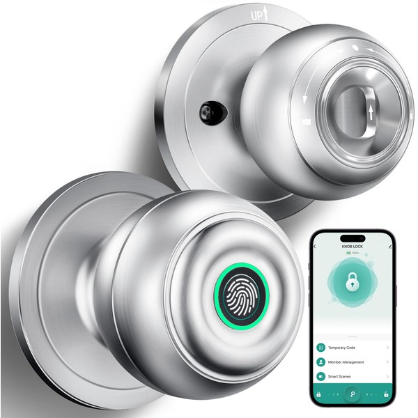 - SECURITY DESIGN DOOR LOCKS: The biometric door knob with lock blends style and functionality. It can recognize your thumbprint within 0.1 seconds, store 20 fingerprints, and 5s Auto locking feature to ensure your home is safe. Fingerprints are stored locally and not uploaded to the cloud to ensure your family's privacy.