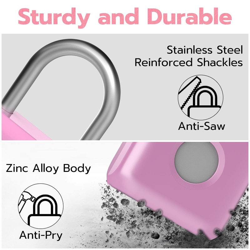 Fingerprint Padlock eLinkSmart Gym Locker Lock for Girls Women with Phone App iOS Watch Metal Keyless Combination Locks for School Sports Locker Toolbox Hasp Storage Pink