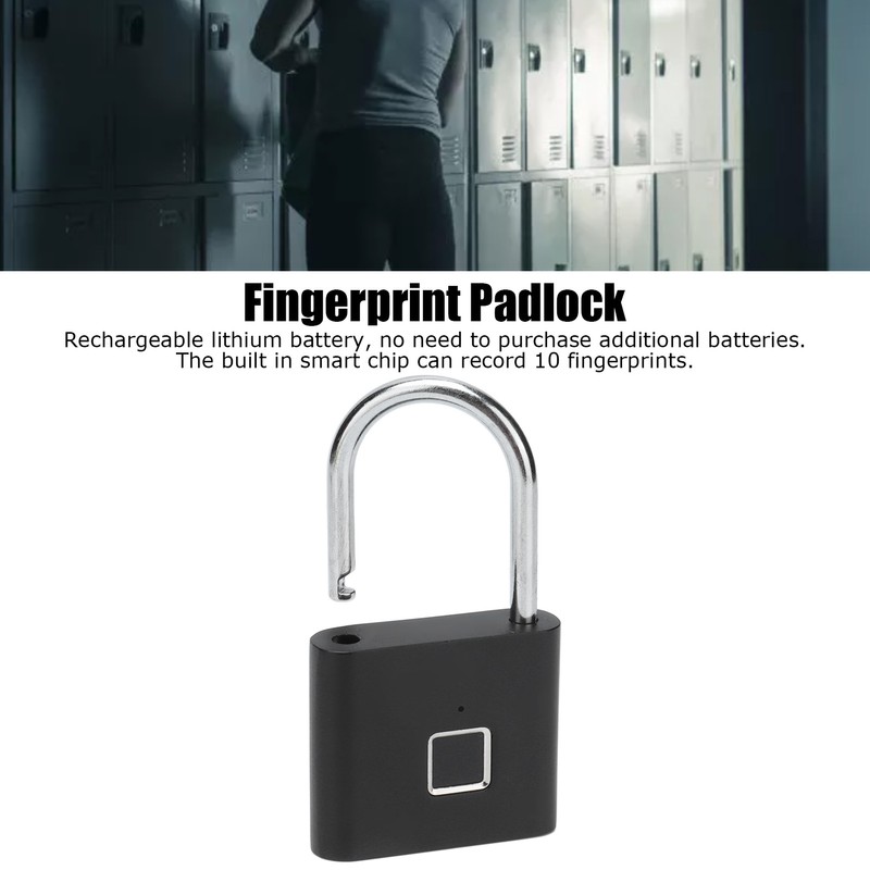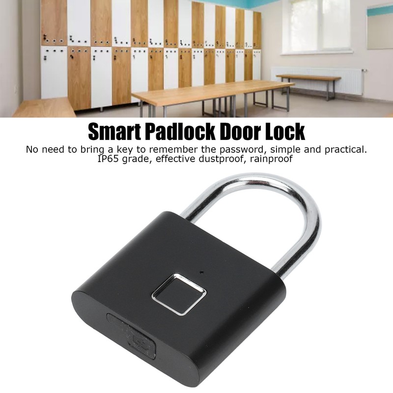 Fingerprint Padlock Zinc Alloy Smart Office Home Cabinet Door Dormitory Locker Fingerprint LockBlack
