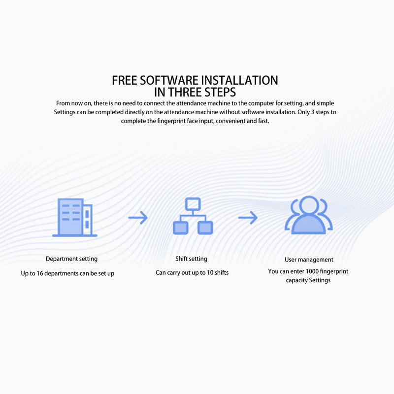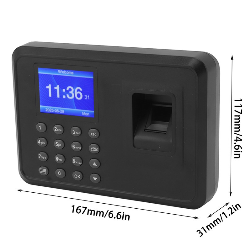 1、Free Setting of Working Hours: No software required, the fingerprint attendance clock completes the registration and punching through fingerprint verification, freely sets the working period, and automatically enters and exits, eliminating the tedious paper punching. 2、Multifunctional: Simple operation, stylish appearance, HD screen, elegant design. Staff punching supports automatic accurate time calculation, automatic deduction of lunch time, support overnight overtime, support different pay periods, support voice prompt. 3、HD Optical Fingerprint Acquisition: High standard fuzzy recognition, with 10000 record memory, can input 1000 fingerprints. Using non film fingerprint collector, multi angle fingerprint identification technology, identification speed is fast, durable. 4、USB Disk Download: Intelligent employee report function, convenient for managers to view attendance in real time. The report can be generated automatically without software. You can download the Excel attendance report directly from the USB flash drive. (Note: USB disk not included) 5、Suitable for Small Business: This machine is specially designed for fingerprint and password attendance, can edit name, department, frequency and other information, suitable for offices, factories, hotels, schools, restaurants, retail stores, hospitals and other places.