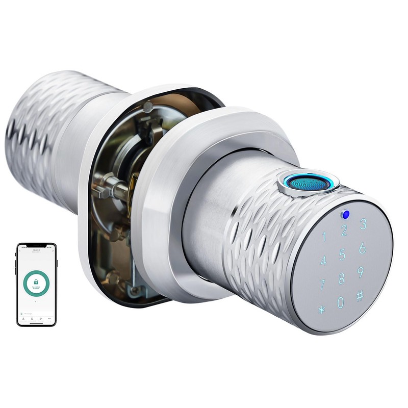 - 🔐【0.2s biometric fingerprint Access】 The 4-in-1 combination doorknob has an advanced fingerprint sensor that will enhance the security of your life. 99 fingerprint+155 user code +app control+2 keys. A variety of ways to unlock so you don't have to worry about the battery can not open the lock or forget the key.