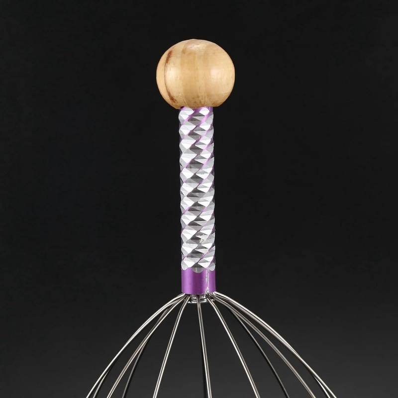 1 x Scalp Massager Hand Held Therapeutic Head Scratcher Steel Wire Head Massager with Wooden Handle for Home Spa Relief and Relaxation