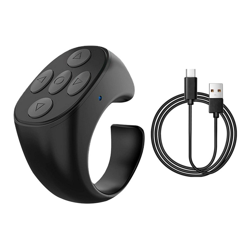 Fingertip Remote Control, Wireless Remote Control Page Turner, Rechargeable Fingertip Bluetooths Camera Remote Shutter for Phones Tablets Camera Kindle(Black)