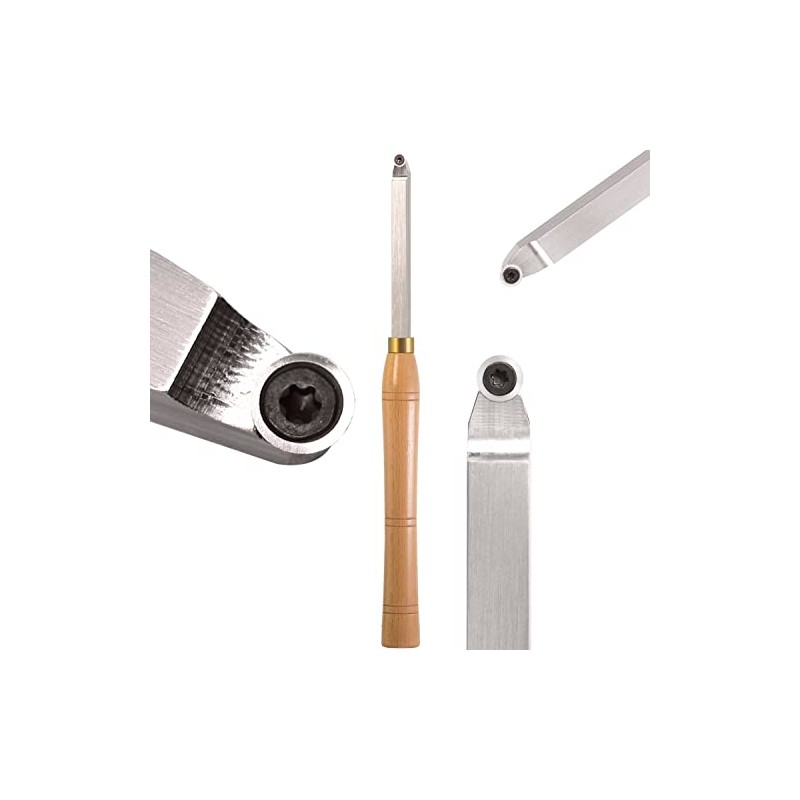 - Indexable replacement carbide insert design. One side becomes dull, just rotate it to get a new cutting edge. And You can find matching carbide inserts for wood turning (R8.9 or H8.9) in Dirtech's Amazon store.
