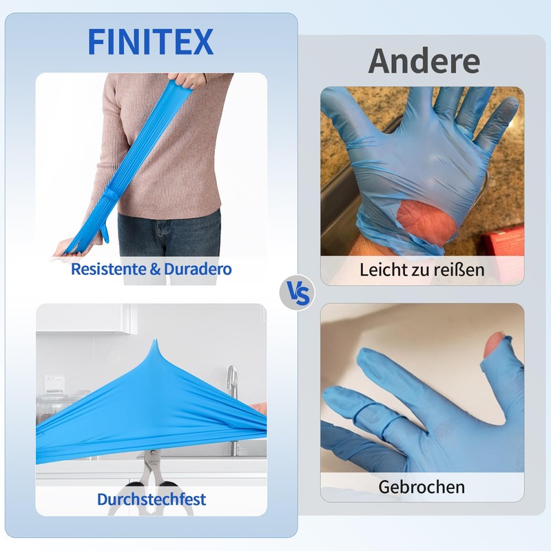 - [Perfect Fit & Suitable Thickness] FINITEX disposable nitrile gloves are designed to fit your hands perfectly. The elastic wrist straps and elastic palms have a suitable thickness that you can easily put on and take off. Our products are designed to provide maximum comfort for your hands during prolonged wear.
