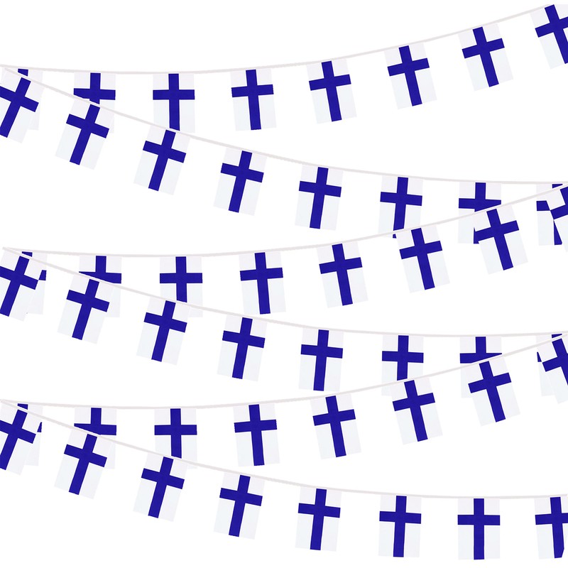 Finland Flags Finnish Small Mini String Banner Flags Miniature Finland Flags Banners For Grand Opening, Olympics Festival,Grand Opening Sports Celebration Decorations (50 Feet 38 Flags)