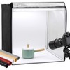 - Package Contents: (1) x Quality 24'' x 24'' x 24'' / 60 x 60 x 60 cm cube photo studio tent box; (3) x PVC backdrops (Black, White & Tan); (2) x Output 5500K LED lighting bands; (1) x Power adapter; (1) x Light softener diffuser cloth; (1) x Carry bag