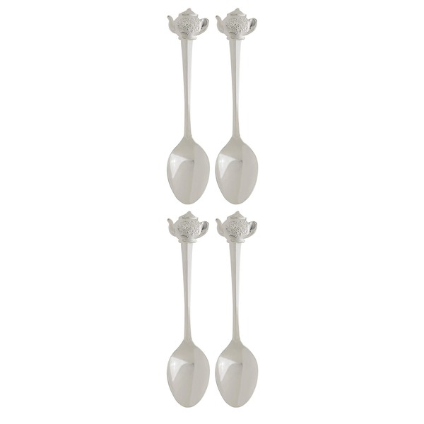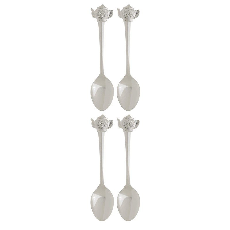 Fino Demi Spoon Set, Teapot Design, Silver Plated Stainless Steel, Set of 4